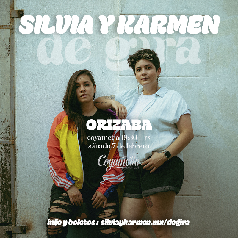 7 febrero 2026 | ORIZABA Silvia y Karmen de gira en Orizaba Fecha: sábado 7 de febrero de 2026 Hora: 19:30hrs Lugar: Coyametla Dirección: Ote. 2, Centro, 94300 Orizaba, Ver. Consigue tus boletos para el concierto de Silvia & Karmen en ORIZABA Consigue tus boletos